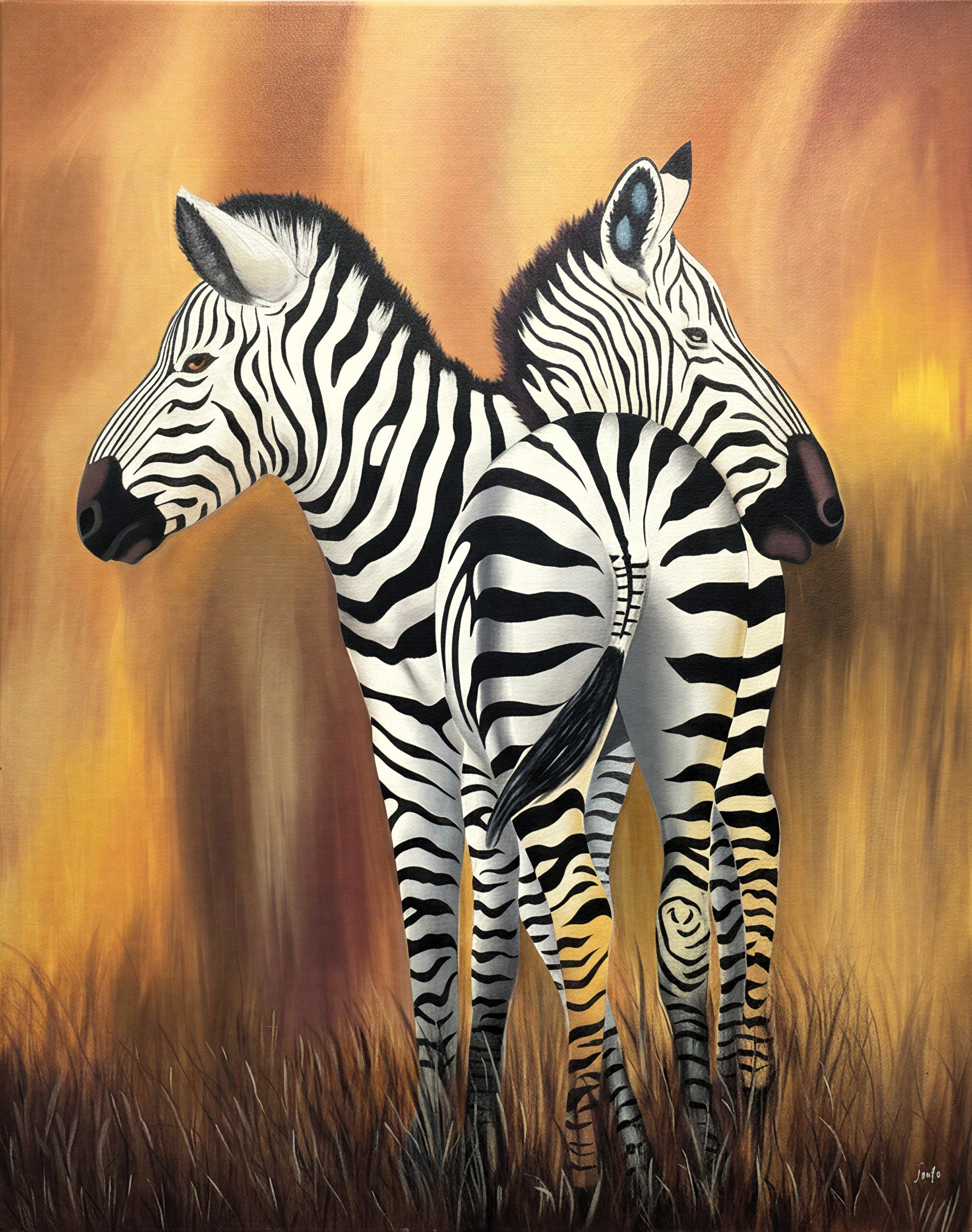 The artist captures not just the beauty of these animals, but the story behind their posture: a tale of companionship, balance, and vigilance.